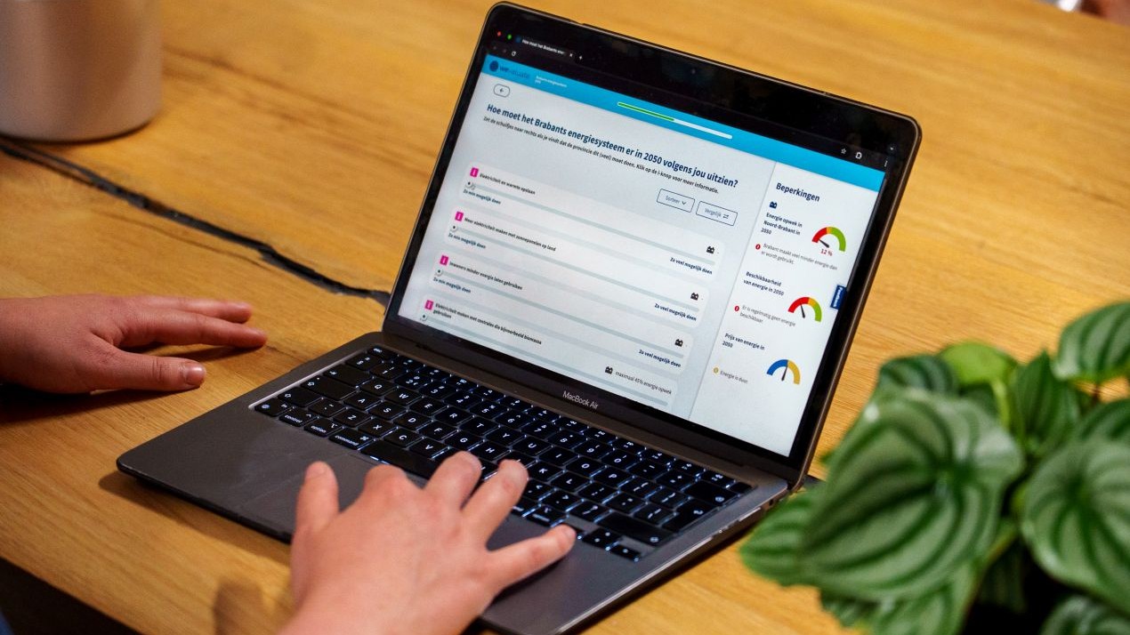 Samen met onderzoeksbureau Populytics ontwikkelde de provincie een Participatieve Waarde Evalutatie (PWE)-raadpleging. Via deze digitale raadpleging namen deelnemers plaats op de stoel van de bestuurders van de provincie en maakten ze keuzes over het energiesysteem van de toekomst. Met een schuifbalk in de online tool kozen ze hoe het energiesysteem er volgens hen uit zou moeten zien. Wekken we in Brabant bijvoorbeeld energie op met zonnepanelen op land, kleine kerncentrales of biogas? Of moeten we juist meer energie opslaan? Bij iedere keuze werd direct inzichtelijk wat de impact is op de opwek, beschikbaarheid en prijs van de energie. Zo was het voor deelnemers duidelijk wat de gevolgen van keuzes zijn en of de keuzes in realiteit gemaakt kunnen worden. Na het maken van een keuze motiveerden deelnemers waarom ze bepaalde keuzes maakten.